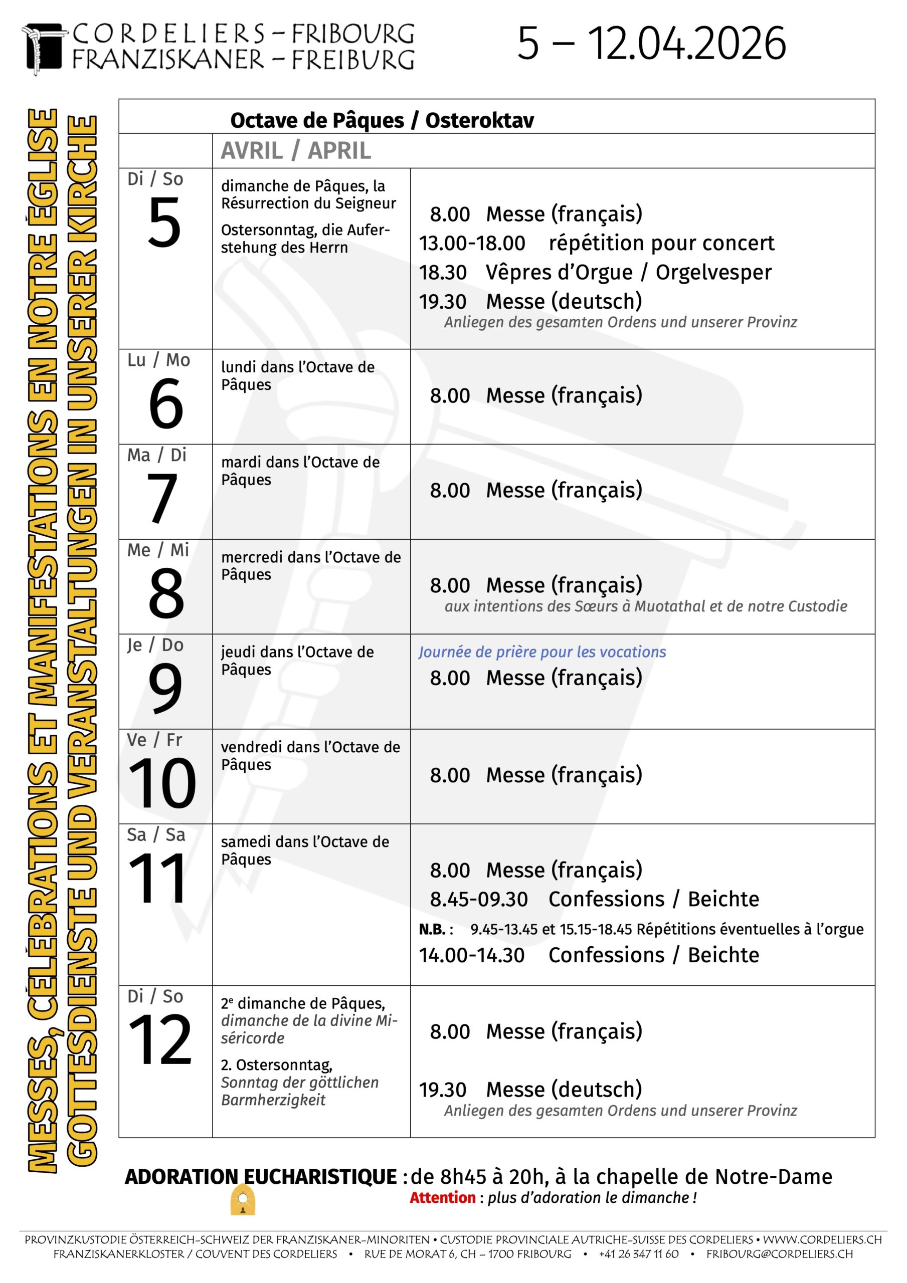 Agenda de la semaine 6 avril 2026 par admin Retrouvez ici les célébrations et manifestations de la semaine chez nous.